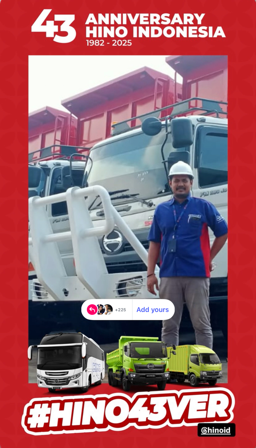 43 Tahun Hino December 17, 2025 in LIPUTAN MEDIA 43 Tahun dan terus berjalan turut serta membangun negeri tercinta ini. Hino Indonesia telah membuktikan sebagai produsen Truk terpercaya pilihan masyarakat Indonesia. Hino 43ver